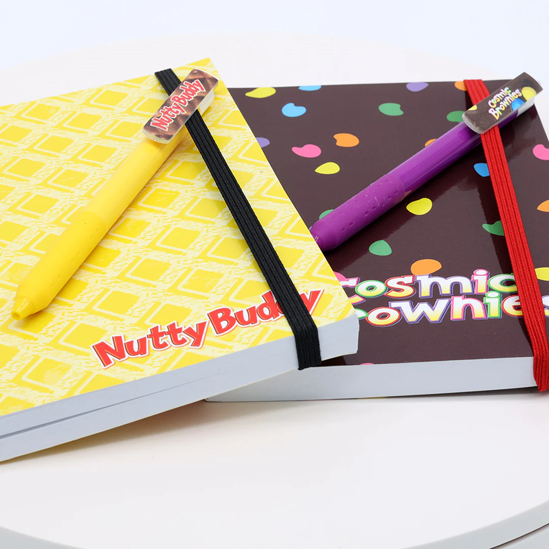Our irresistible collection includes pens inspired by Cosmic Brownies, Nutty Buddy, Zebra Cakes, Oatmeal Creme Pies, and Swiss Rolls. The box features an image of each delectable treat, bringing a touch of nostalgia and joy to your writing experience.